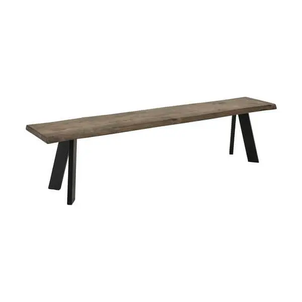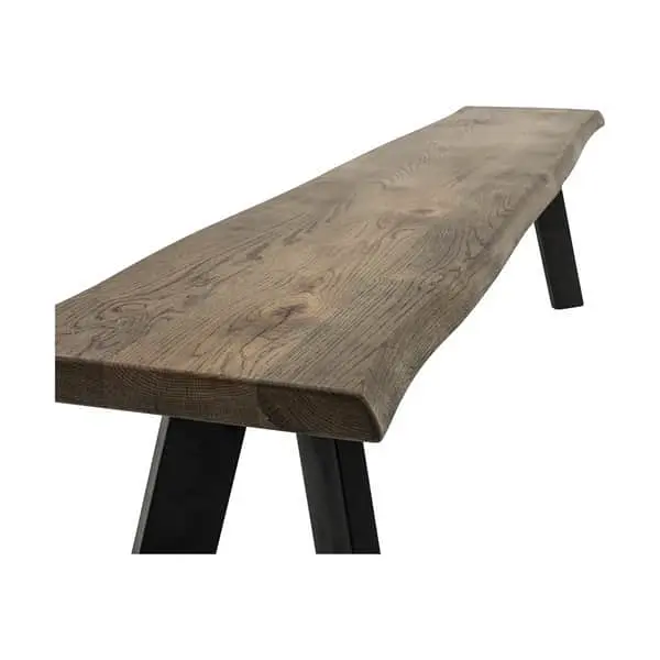 Bænken udstråler kvalitet og har et moderne rås udtryk over sig. Det lækre lakerede egetræ med sortmalede ben af jern får naturen ind i stuen og skaber ro og varme.
