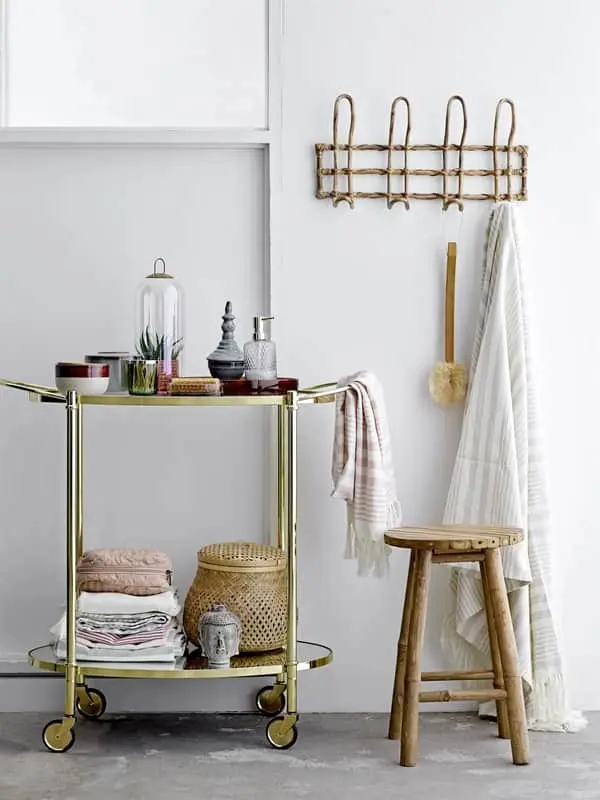 Den er ligeledes anvendelig i badeværelset til at håndklæder og badebørster – brug den i soveværelset til bløde morgenkåber, det er praktisk og smukt på samme tid.