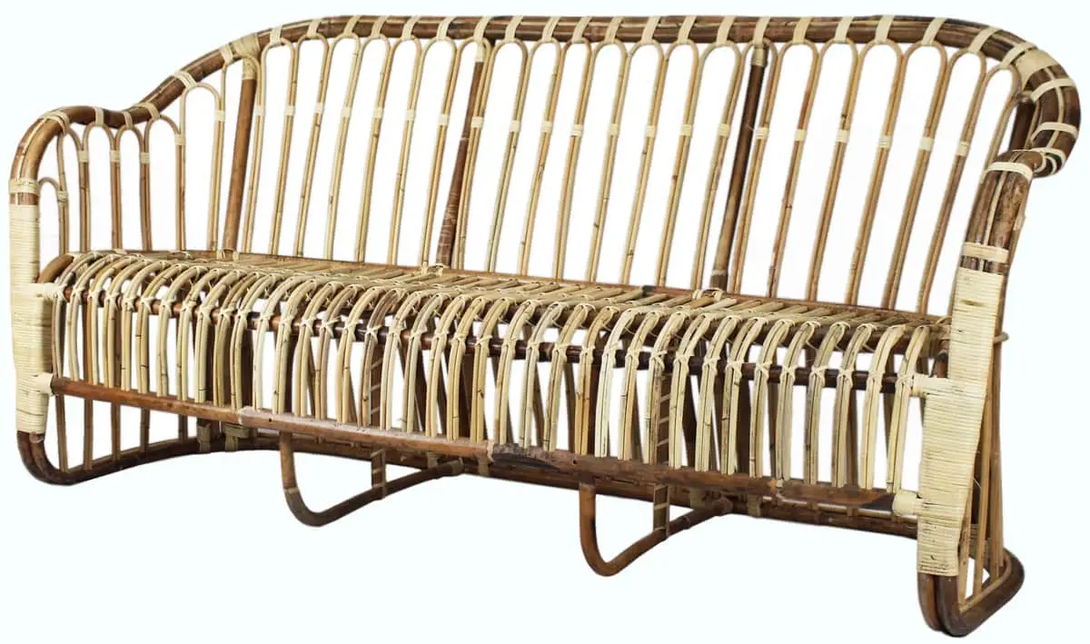 Bænken er produceret i rattan, som er et naturligt, let og slidstærkt materiale. Og så er det verdens næst-hurtigst voksende materiale til møbelfremstilling.