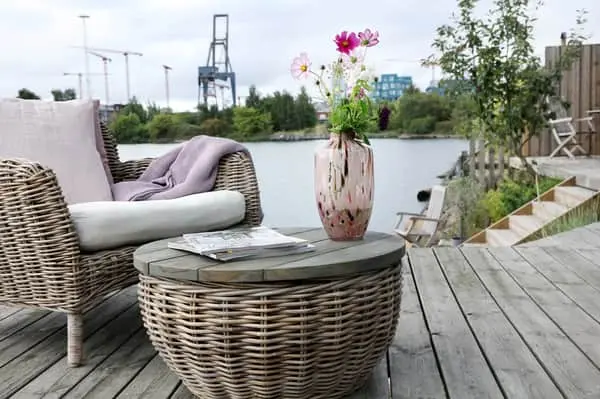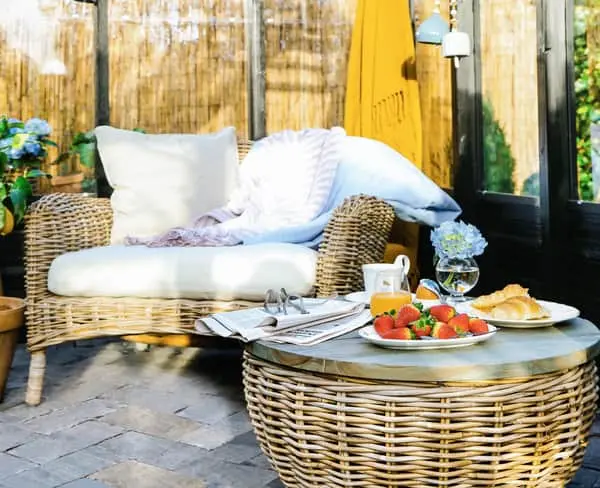 Indret sommerhuset eller udestuen med møbler i flettet rattan og skab den helt rette landlige sommerstemning.