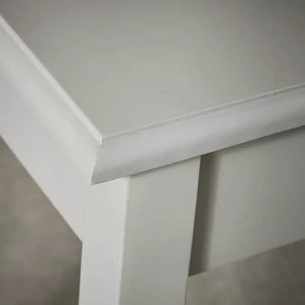 Det flotte skrivebord har et moderne og klassisk design, som med fordel kan bruges i stuen eller i soveværelset. Bordet er fremstillet i hvid fyrretræ og har to skuffer, som passer perfekt til alverdens ting og sager. Skrivebordets smalle design gør, at det ikke optager unødig plads – det er derfor ideelt til hjemmekontoret.