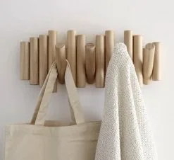 Hold styr på hele familiens jakker, tørklæder, huer og hatte med denne moderne og dekorative knage. Den smarte knagerække har 5 knager, som vippes ud ved brug, også kan de nemt vippes på plads, når den ikke skal bruges. Hver knage har en max belastning på 2,3 kg.