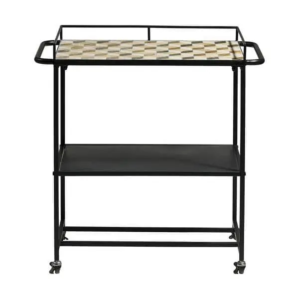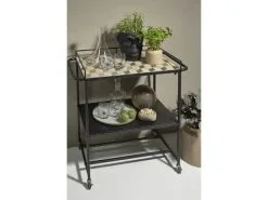 Med denne barvogn fra Villa Collection er du godt på vej til at kunne agere aftenens bartender, når gæsterne skal have en drink eller to efter middagen. Find dine drinksglas, en shaker, og hvad du ellers har af drinkstilbehør frem og prøv kræfter med hjemmelavede drinks ved barvognen – dine gæster vil med garanti elske det! Til hverdag pynter barvognen fint med den flotte, mønstrede stenindsats. Og her kan den både fungere som en afsatsplads ved køkkenet eller i stuen med dine flotteste drinksglas.