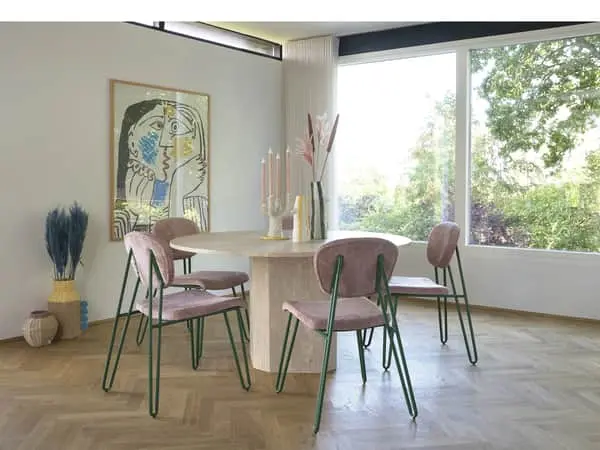 Pryd dit hjem med denne smukke stol fra Villa Collection. Stolen er i sig selv en fryd for øjet, samtidigt med at den sikrer en god siddekomfort både ved spisebordet og ved skrivebordet.
