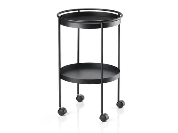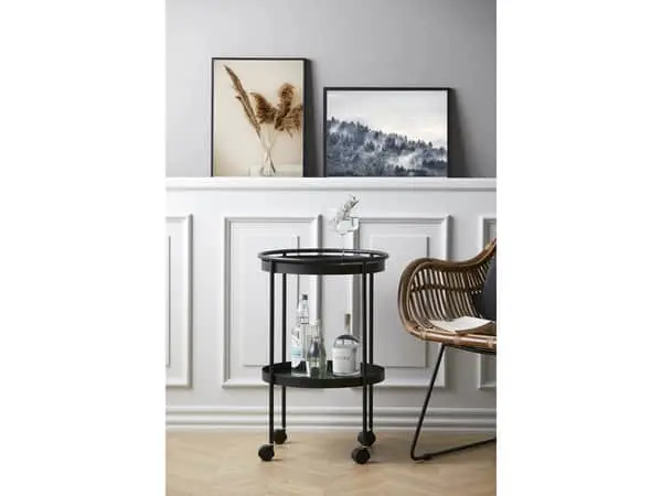 Pynt stuen, loungen eller kontoret med den stilrene Rocks barvogn fra Zone. Barvognen har to hylder, så der er plads til alle de nødvendige flasker og glas, samt din isspand, shaker og snacks. Og med hjul kan du nemt flytte barvognen til der hvor festen sker.